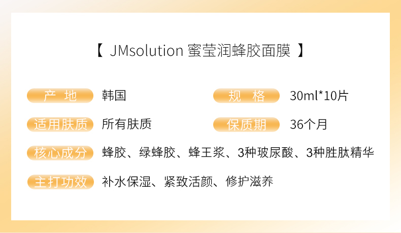 JM蜂蜜保湿补水面膜 急救面膜蜂蜜深层补水玻尿酸女保湿(1盒10片)