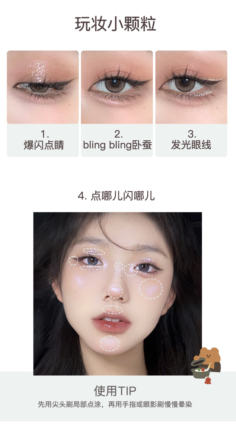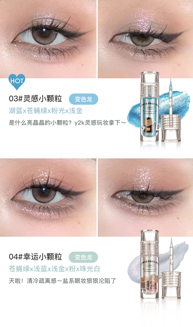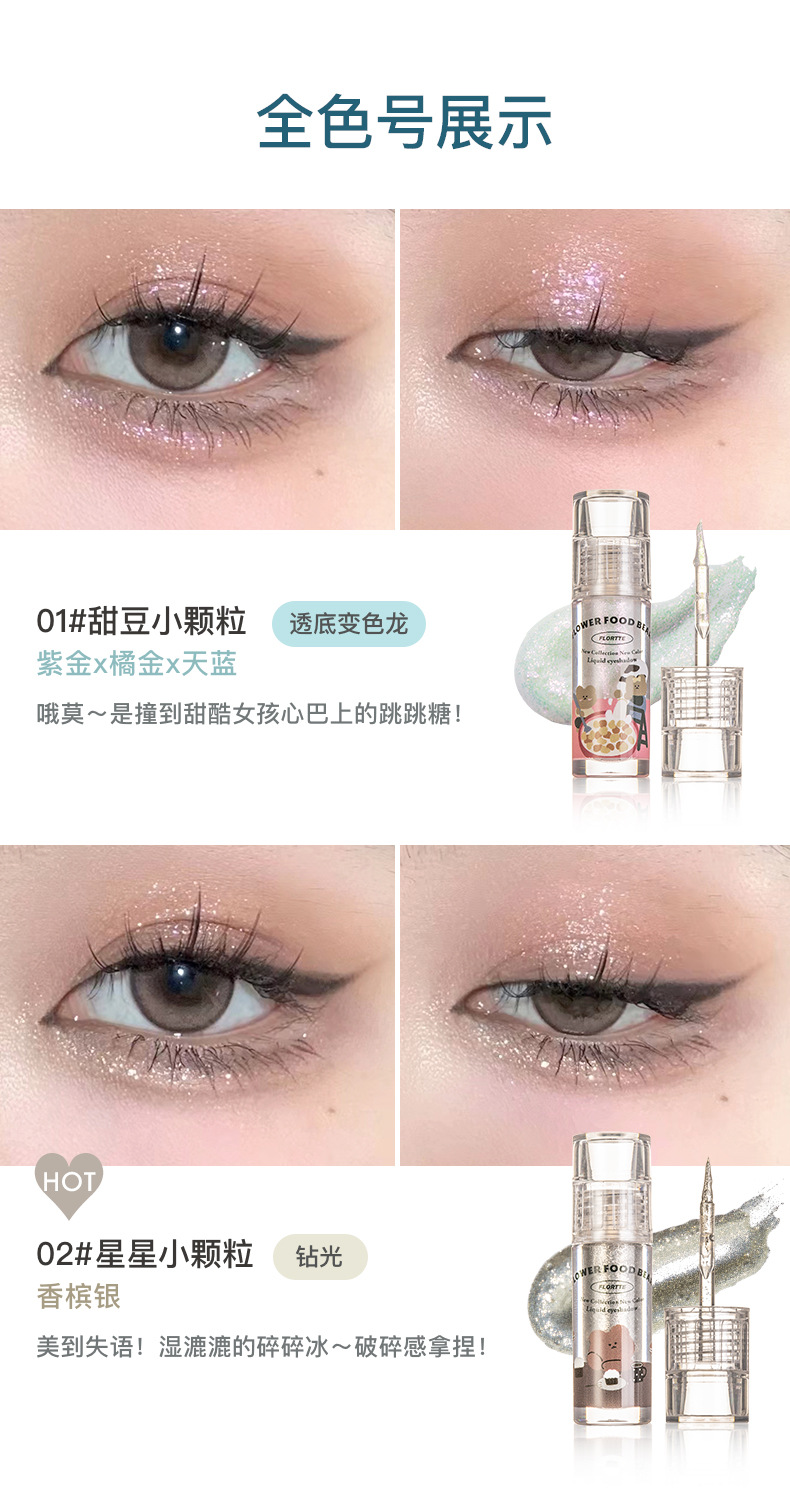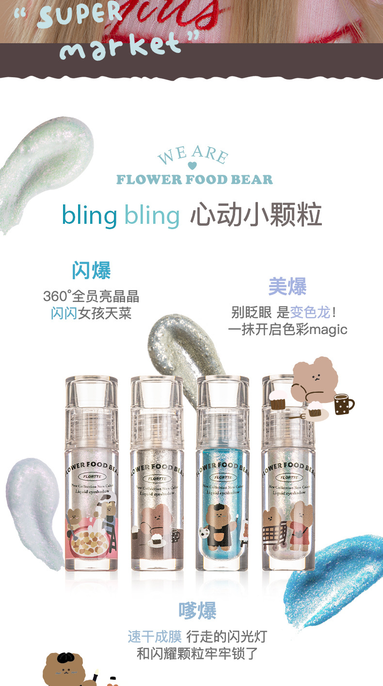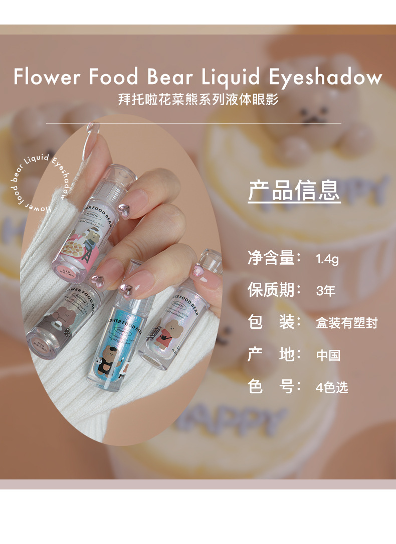 FLORTTE花洛莉亚 花菜熊系列液体眼影 超闪提亮滴泪妆