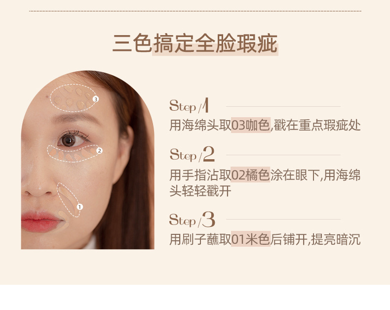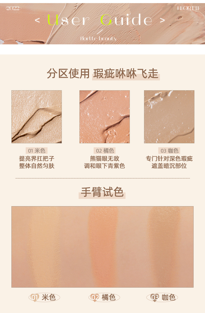 FLORTTE花洛莉亚三色遮瑕膏盘 遮盖痘痘印斑点黑眼圈提亮肤色泪沟