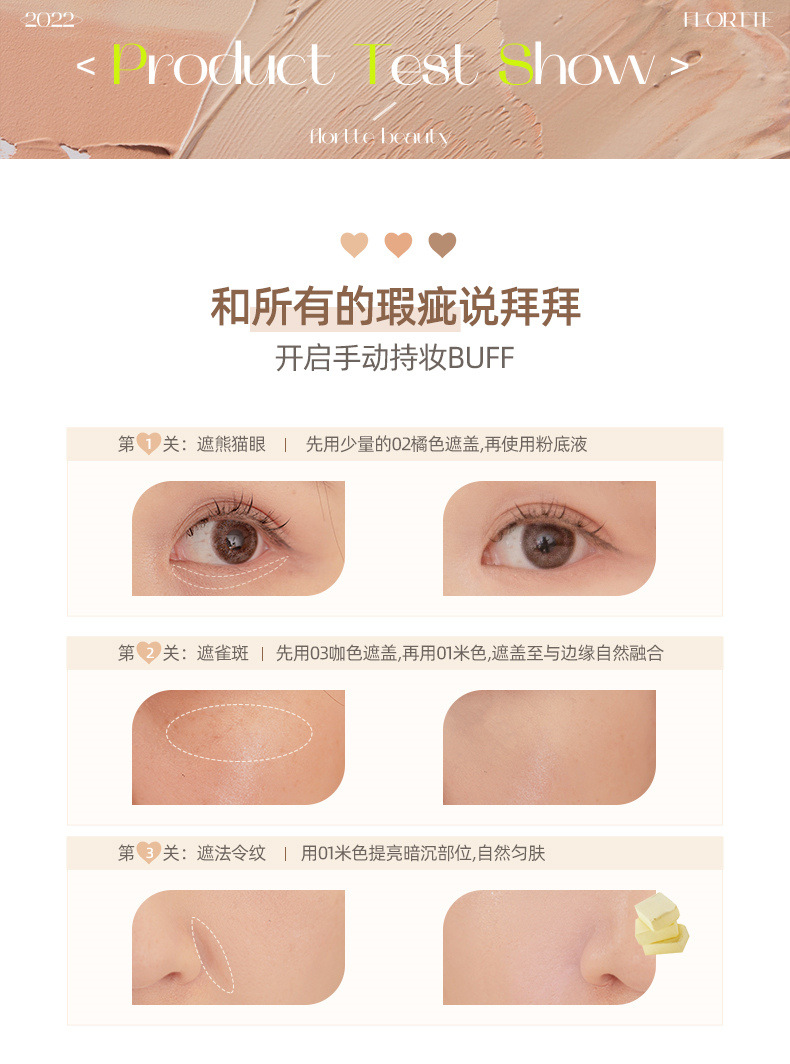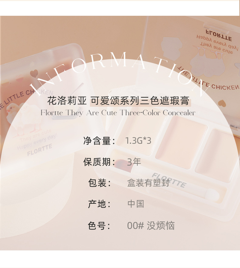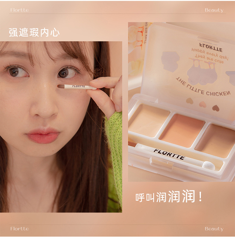 FLORTTE花洛莉亚三色遮瑕膏盘 遮盖痘痘印斑点黑眼圈提亮肤色泪沟-Digicat 猫电澳洲