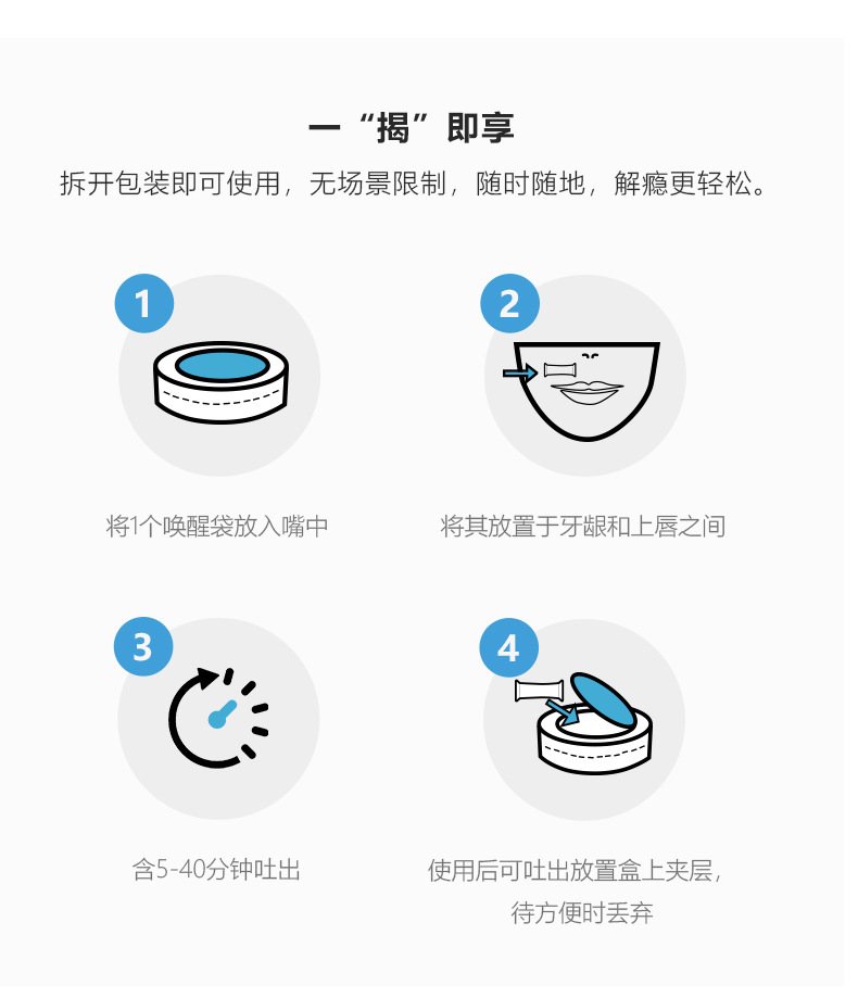 极度唤醒;口感还原度高;口气清新;口含不打扰;不黑牙不染牙