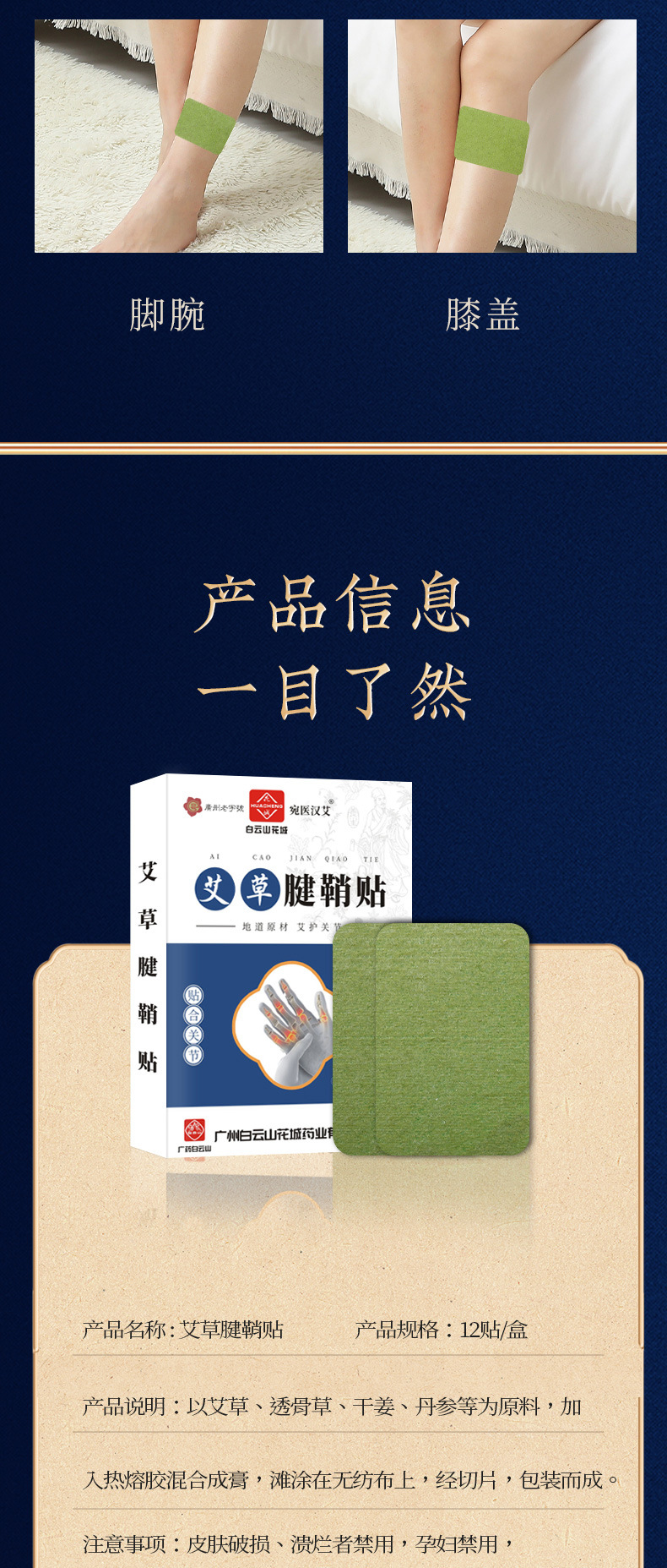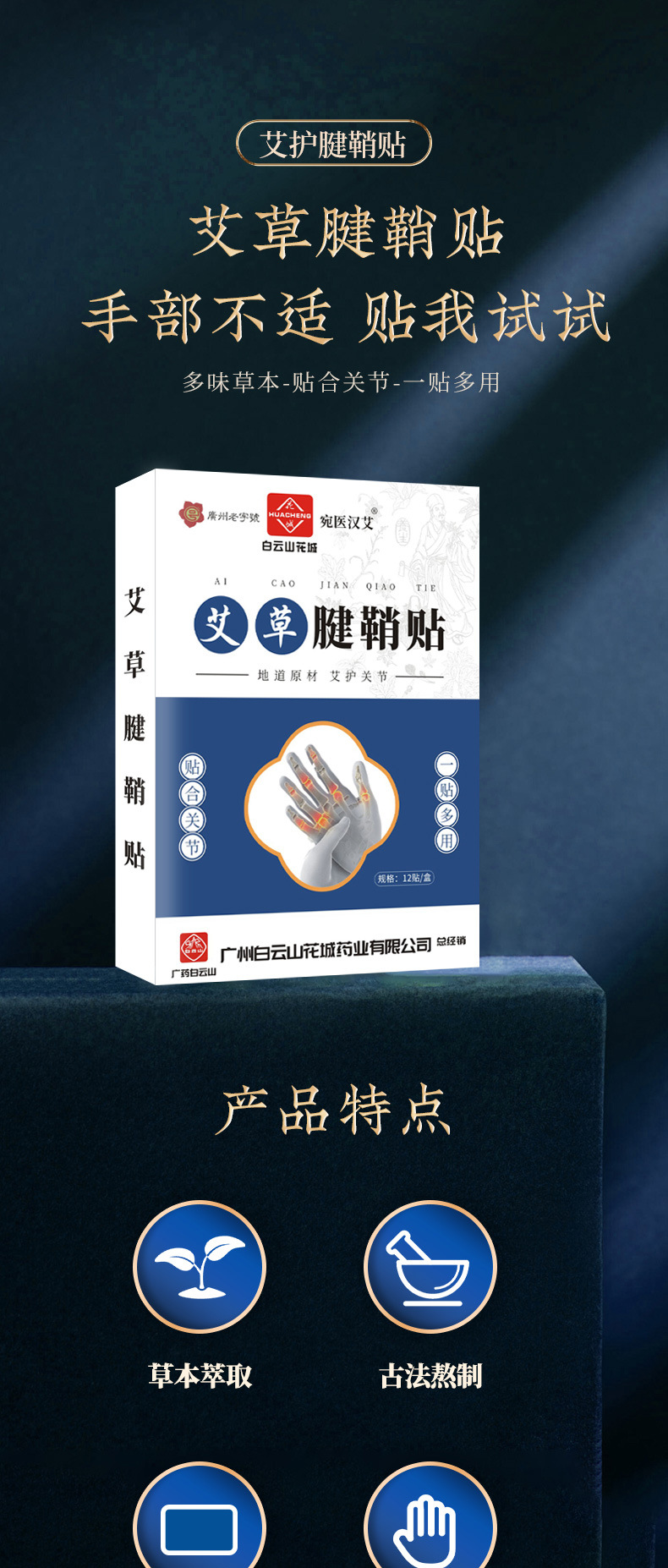 白云山花城腱鞘贴 手腕关节贴舒筋护腕膏贴艾灸贴艾草腱鞘贴