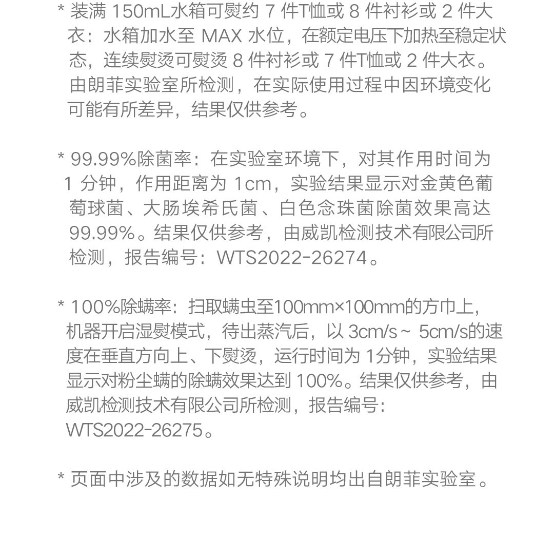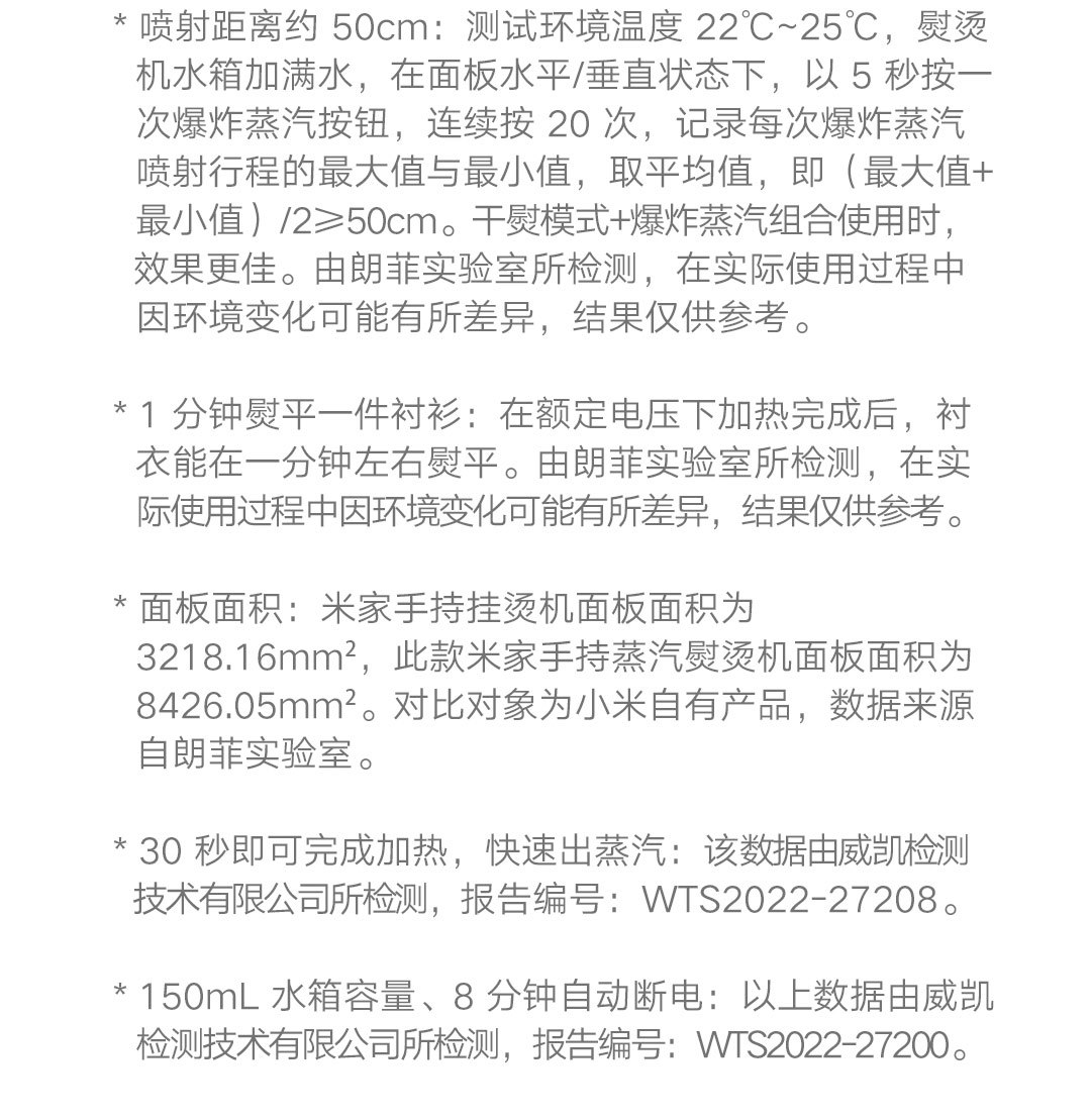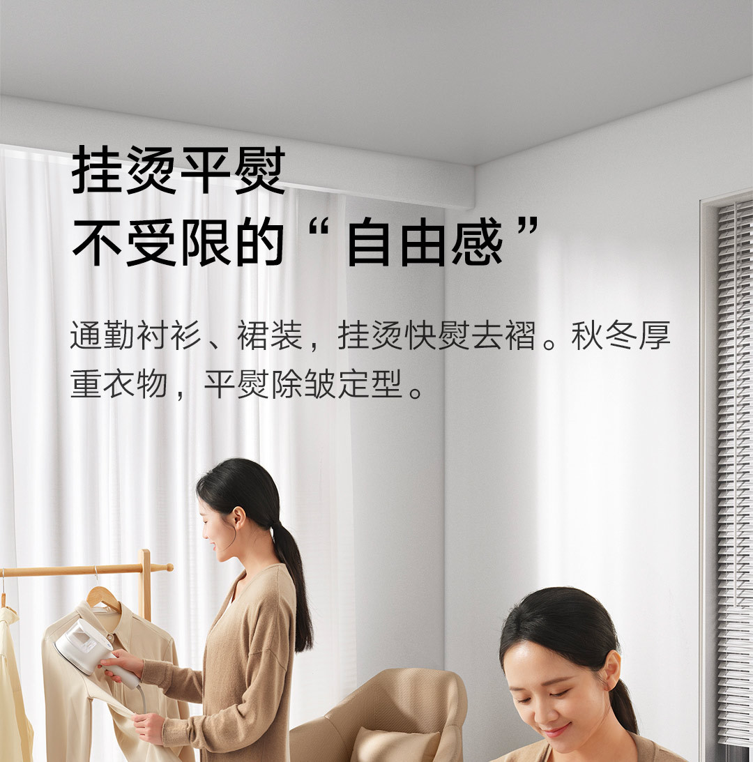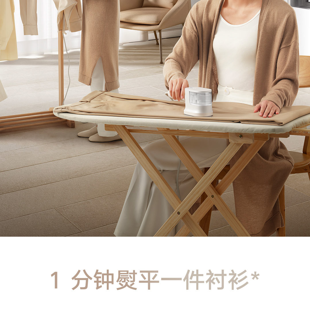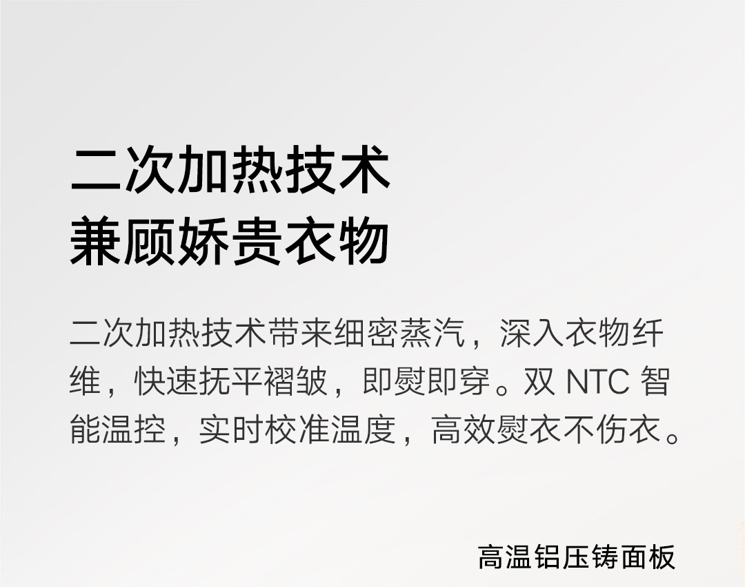 30秒快速出蒸汽;1分钟快速除皱;可视化150ML大水箱; 增压脉冲蒸汽;高温蒸汽除菌除螨,多种熨烫模式;