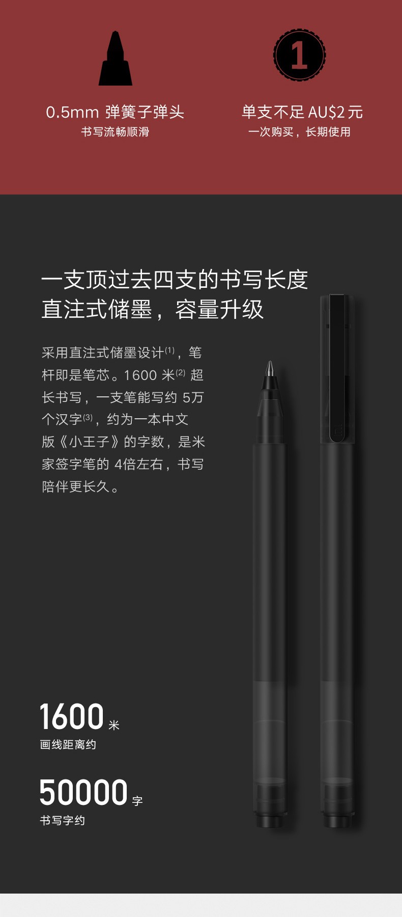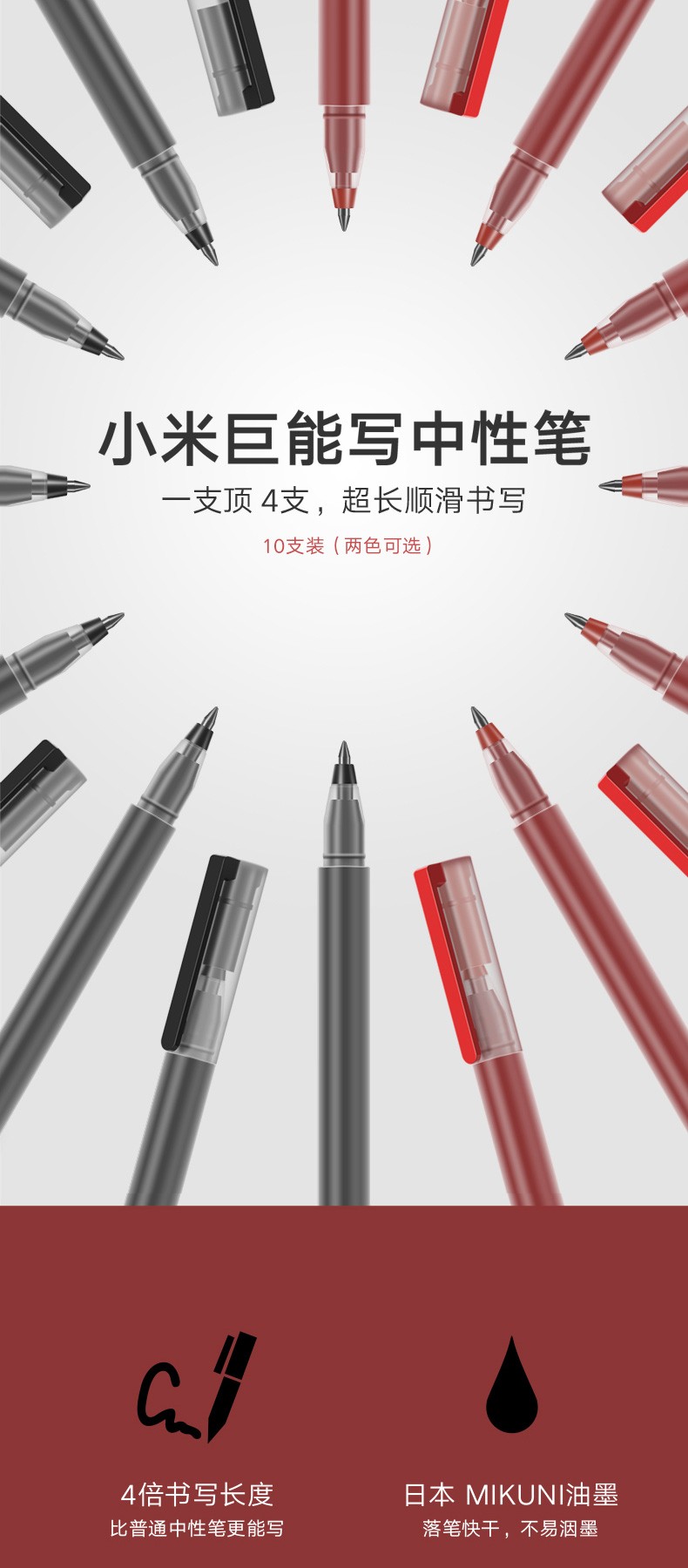 小米巨能写多彩黑色红色中性笔0.5mm弹簧子弹头办公商务书写笔