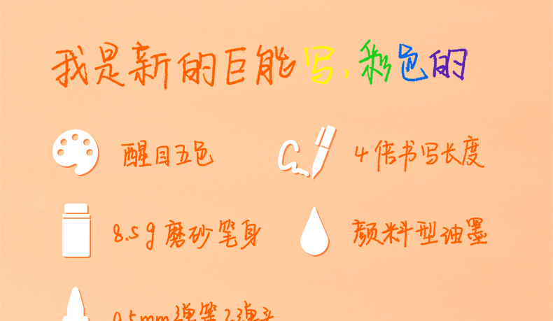 小米多彩中性笔 各种颜色 磨砂笔身 四倍书写长度 颜料型油墨