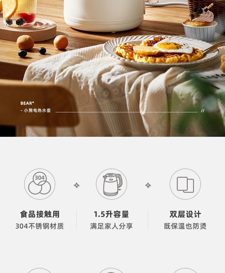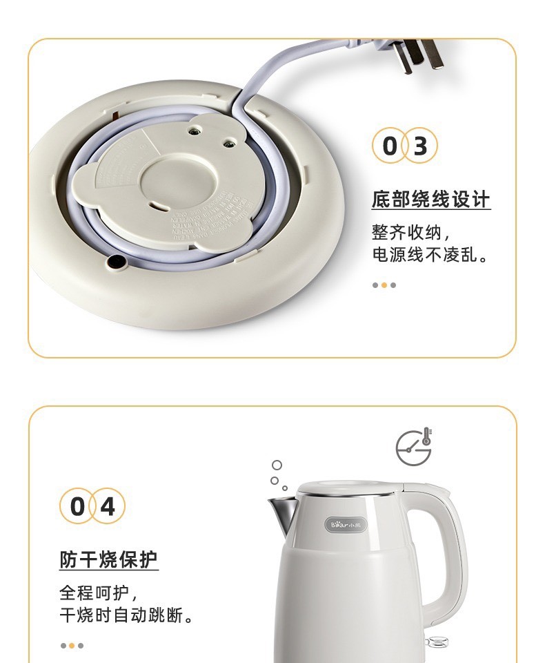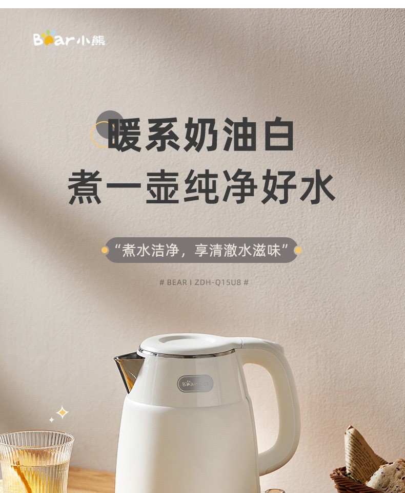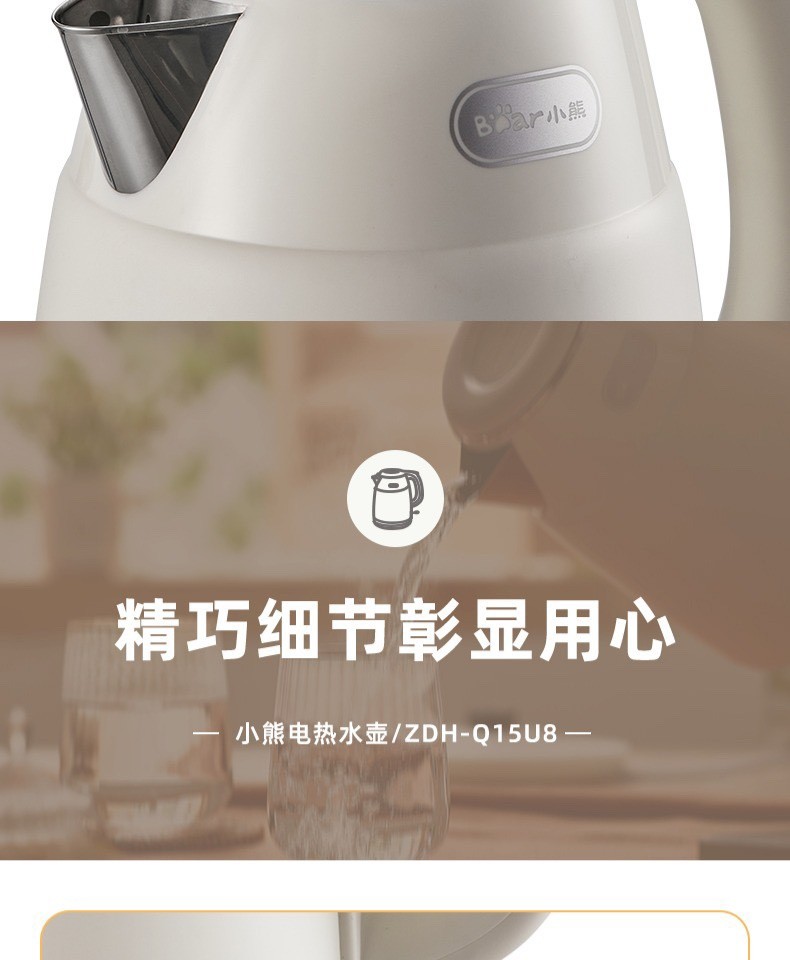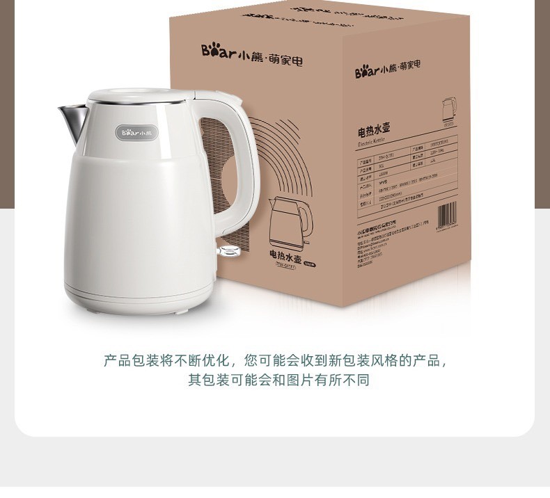 小熊复古热水壶 家用宿舍烧水壶电热自动电水壶不锈钢水壶1.5L