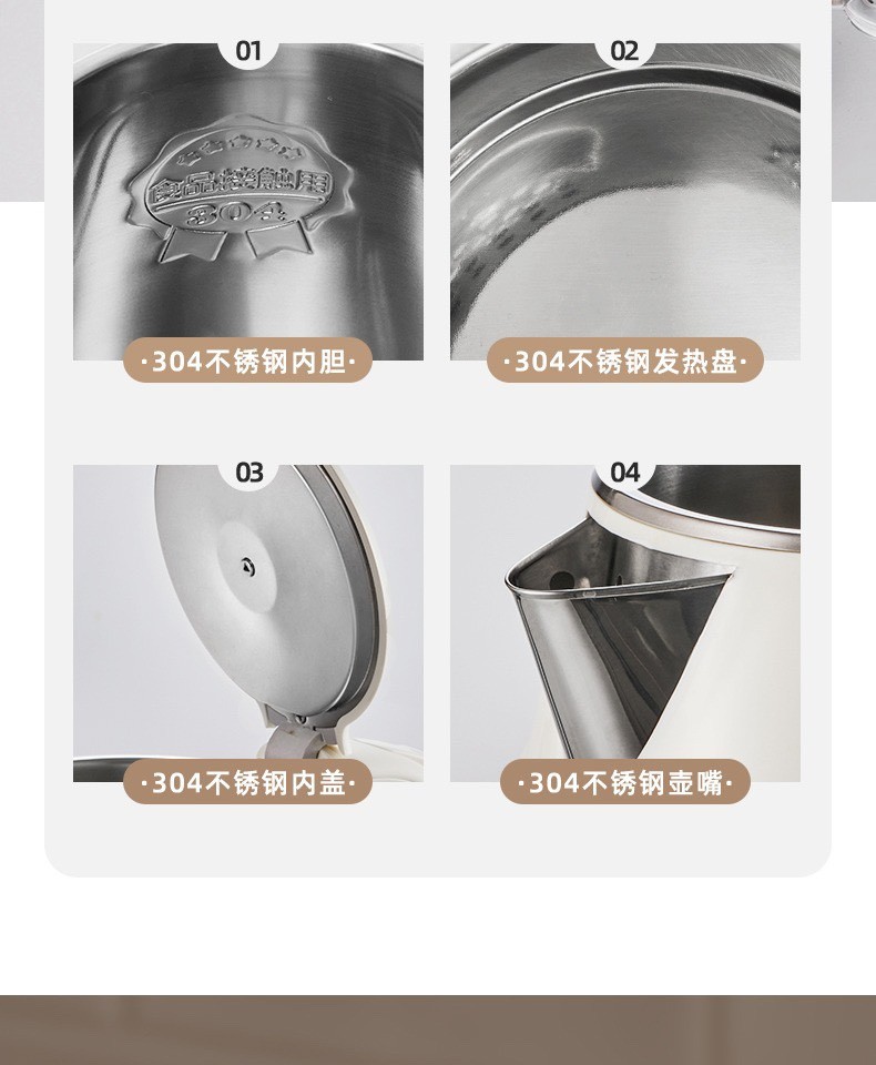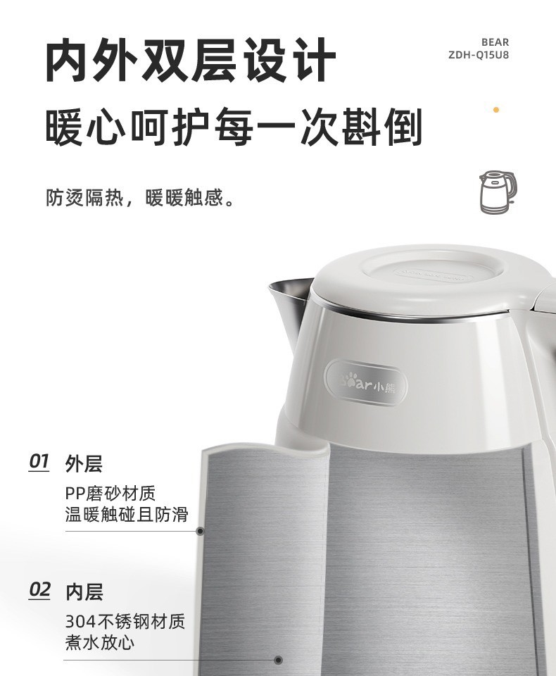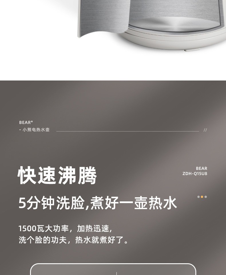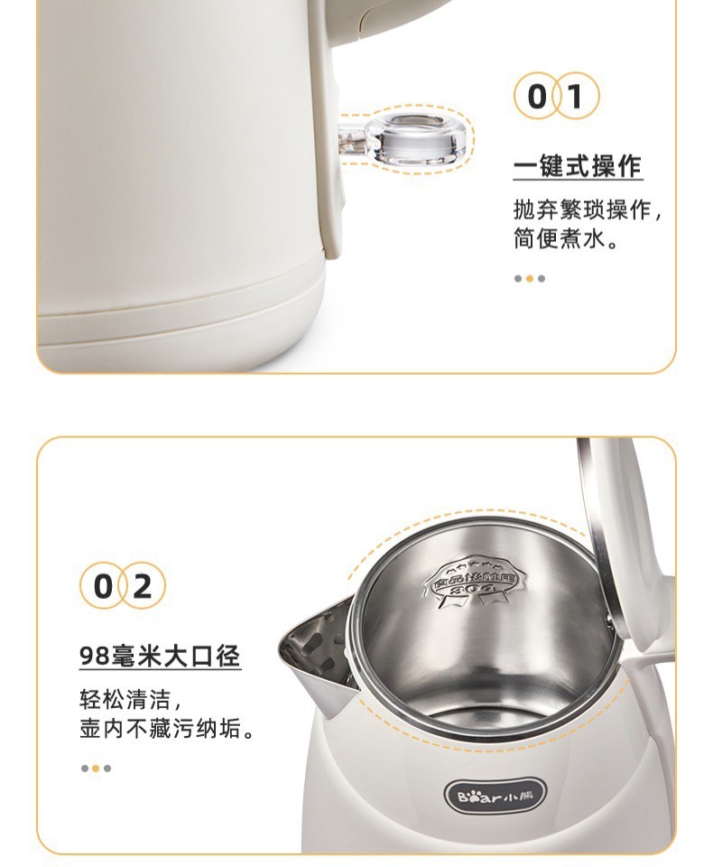 小熊复古热水壶 家用宿舍烧水壶电热自动电水壶不锈钢水壶1.5L