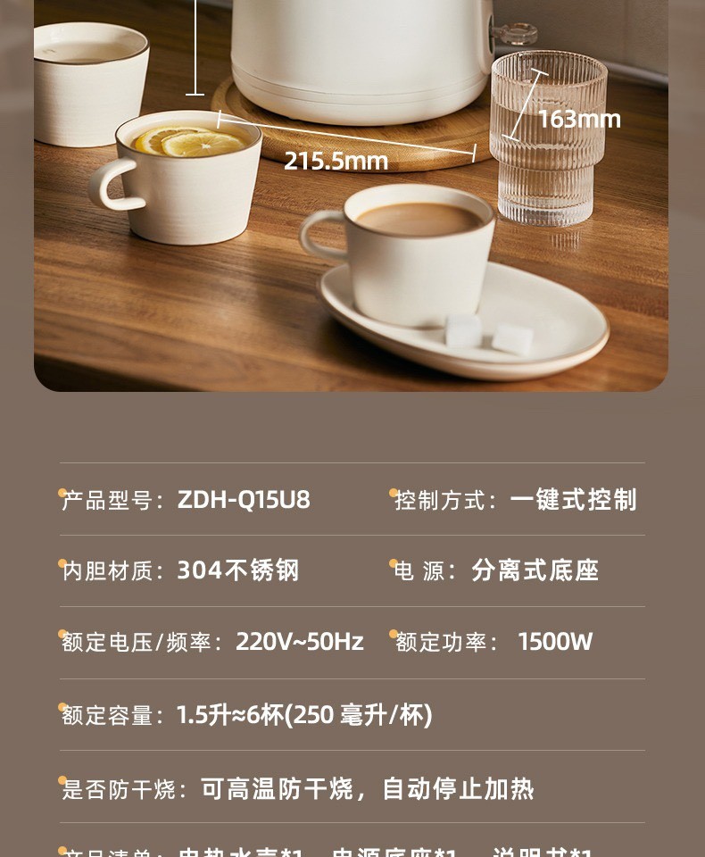 1500W大功率,两段阻尼式开盖;防止蒸汽瞬间冒出,自动停止加热;